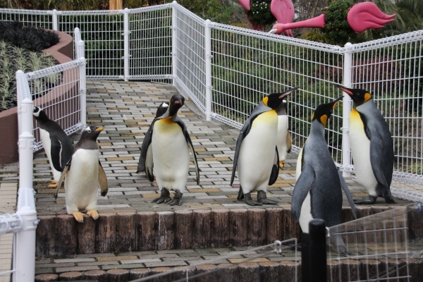 アドベンチャーワールド、歩いて無事に会場入りしたペンギンたち。キングとジェンツー、あたりを見回したりしていますが、落ち着いています。イベントでは、外に出るのがヘーキ(好きかも?)で人がたくさんいてもヘーキな、適性のある個体を選抜して出場させているそうです。
