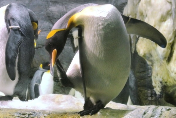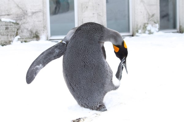 鳥が足で翼の外側から頭を掻くのを『間接頭かき』、足と身体との間に翼がない(翼を上げた)状態で頭を掻くのを『直接頭かき』と呼ぶのだそうです。で、ペンギンの場合はやっぱり『間接頭かき』ということになるのでしょうか?