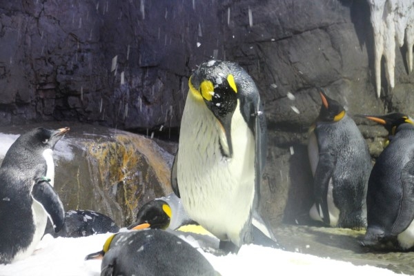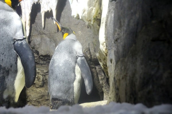 海遊館の子育てキング、続きます。この日はお母さんがヒナを守っていました。周囲からの攻撃に備えて警戒を怠りません。ヒナやタマゴがあると、子育て欲に駆られてか、ちょっかいを出してくる輩がおります。この間ヒナのお父さんは、