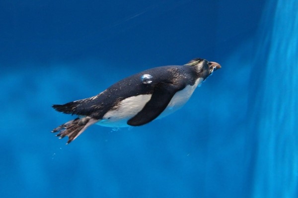 前回換羽中の姿をご覧いただいた越前のイワトビ、今回は水中の凛々しいお姿です。気分がのると、かなりのスピードで泳ぎ回ります。