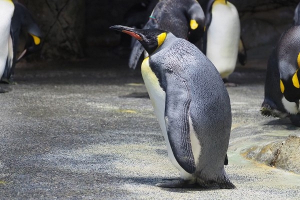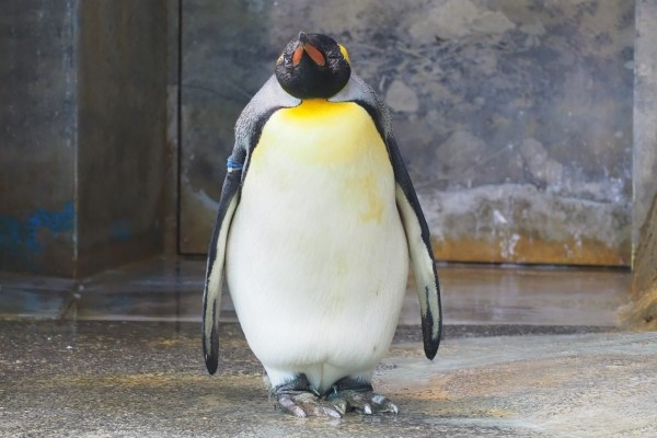 長崎ペン水のキング、お年寄りです。飼育下のペンギンは30歳くらいまで生きる例も珍しくないようです。このキングは、全体はきれいなのに顔の羽がボサボサ、換羽直前のような様子になっています。