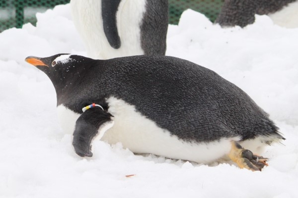 前回写真で可憐な黄色い足を見せていたジェンツー。じゃあ足の裏は? モデルは名古屋港水族館のジェンツー、換羽期なのでモコモコ姿@かつての屋外散歩。