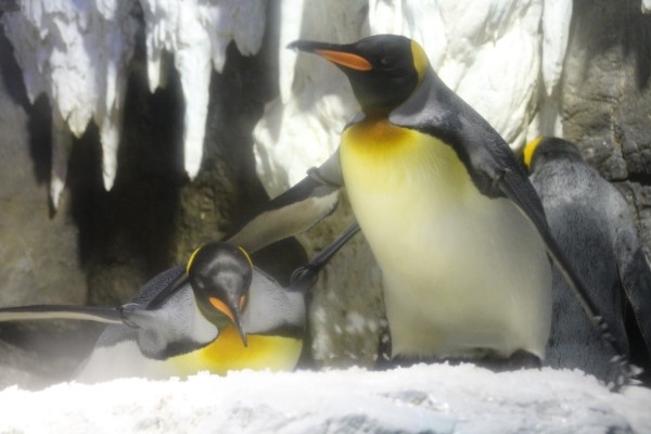 彼らは以前の写真に登場した、壁際で抱き合うようにして抱卵していたペアです。今年は残念賞だったようですが、次のシーズンもまたペアを組むかもしれません。期待しましょう。@海遊館
