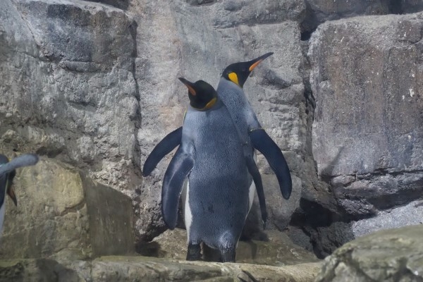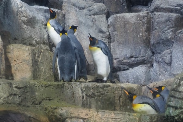 さて、八景島シーパラダイスの続きです。またまた段の上がり口。2羽がすぐに戻って来てます。左端にちらっと見えているキングは、彼らと同じ段にあがるつもり。