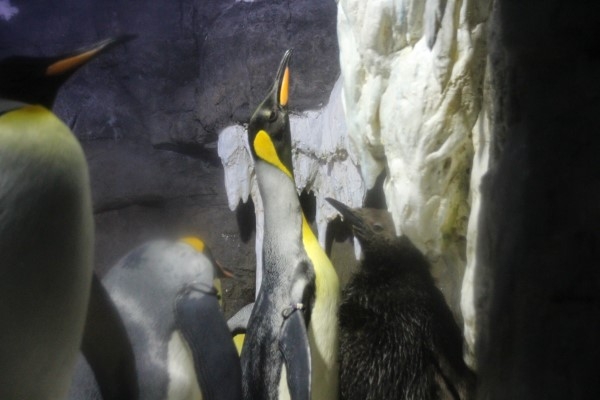 さて、ヒナのお顔を観察していると、お母さんは首を伸ばし高らかに声を上げて自己アピールを始めました。ヒナはじっと見ています。その間に、部外者が忍び寄ってきました。