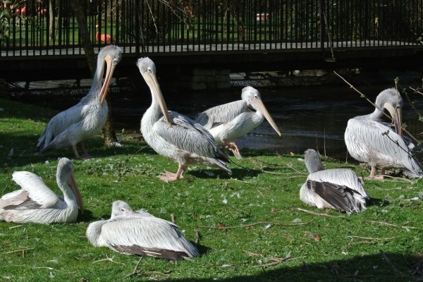 ペリカンと比べてみましょう。彼らの首は、S字形になっているのが外から見てわかります。モデルはバードランドのペリカン集団。