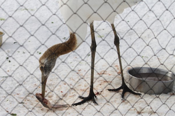 こちらはタンチョウの亜成鳥。ヒナの茶色い羽がまだ残っています。やっぱり成鳥とは色が違います。どちらも旭山動物園でした。