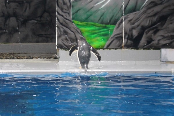 スタッと着地します。この写真は越前松島水族館ですが、どこのジェンツーでも同じことをします。アデリーも同様。気長に待っていれば見られます。