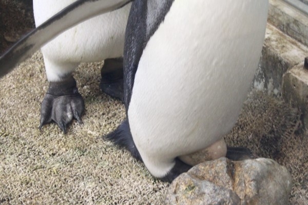 タマゴがチラ見え。抱卵していたのですね。キングのタマゴは300グラムを超えます。ニワトリのタマゴは60グラム前後だそうです。ただし、アドベンチャーワールドでは本物タマゴを偽卵(偽物タマゴ)とすり替え、孵卵器で孵すそうです。なので、これは偽卵かな?