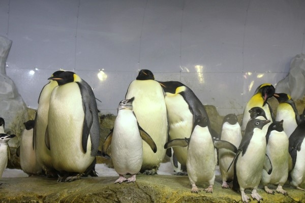アドベンチャーワールドです。エンペラー、キング、アデリー、ヒゲペンギンが写っています。さて、キングはどこでしょう。