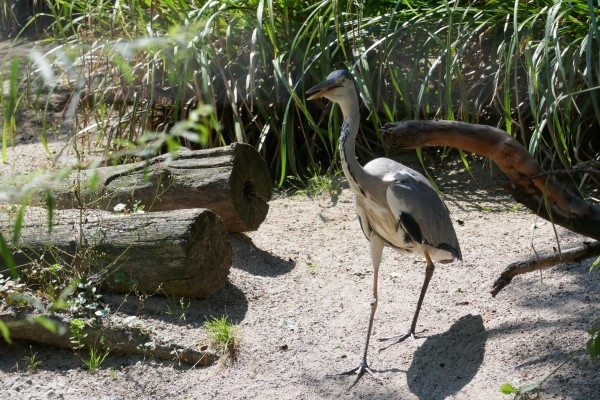 ペンギン敷地を我が物顔に歩くこのアオサギには、脚輪がありません。餌のおこぼれを狙ってやって来た野生個体なのでしょう。バーゼル動物園でした。