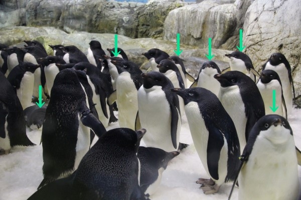 アドベンチャーワールドのアデリー亜成鳥探し、その2。何羽かいます。
