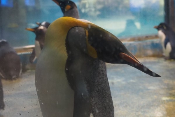 長崎ペンギン水族館のキング、通常姿勢です。首の骨は結構長くて、外からは見えませんがS字に曲げて収納されています。