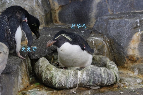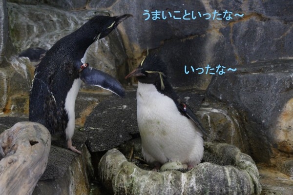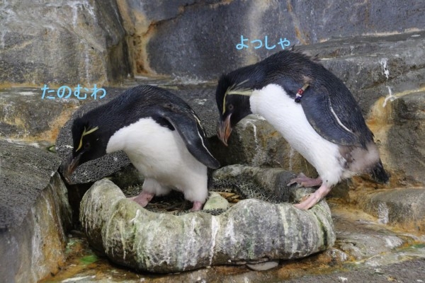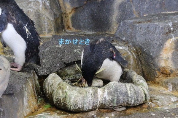 海遊館のイワトビ夫婦、タマゴを2つあたため中。