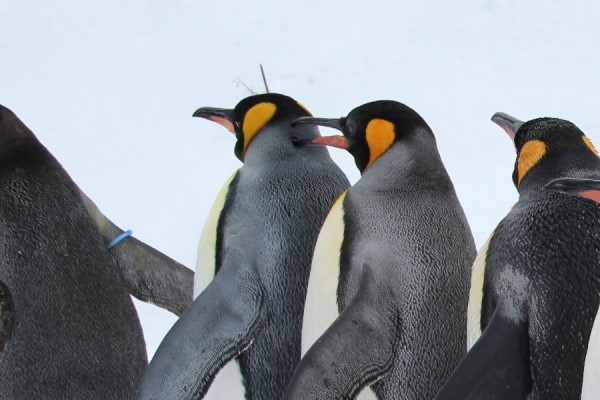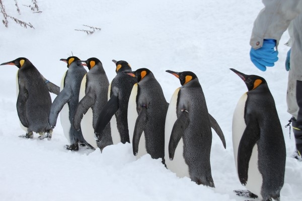 旭山動物園のペンギン散歩、キッチリと1列になって進みます。所々やや渋滞気味? 先頭から2番目と3番目をよく見ておいてください。