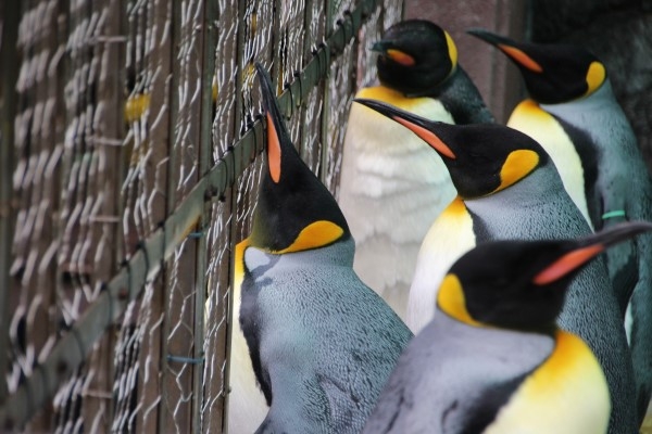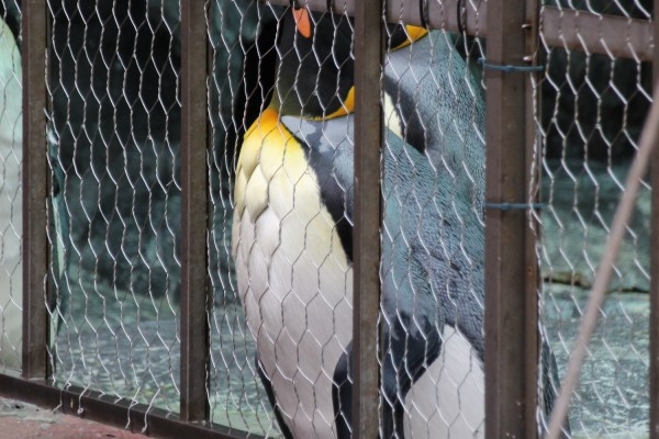 登別マリンパークで思い思いにおくつろぎ中のキングたち。矢印のキングは金網にもたれかかってお昼寝しているようです。