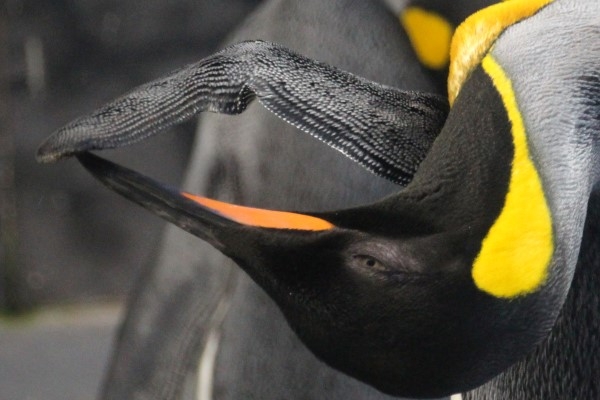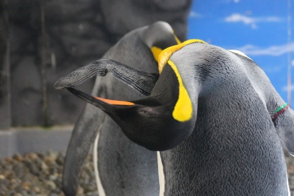 越前松島のお嬢様キング、フリッパーの羽づくろいに熱中していますが・・・。