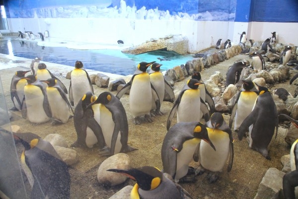12月にアドベンチャーワールドへ行くと、こんな光景が見られます。産卵子育てシーズンに突入したキングが、ペアで場所取りをしているのです。バラバラと立っているようで、ちゃんと2羽ずつになっています。よく見ると興味深いことがわかります。詳しくは次回から。