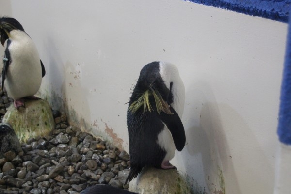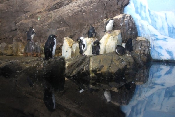 こちらはアドベンチャーワールドのペンギン王国です。あまり大きな石はないのですが、イワトビは石があれば上がるのでしょうか。で、羽づくろいしたりしてくつろいでます。