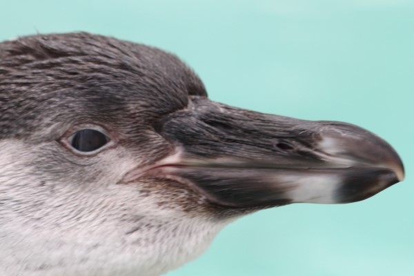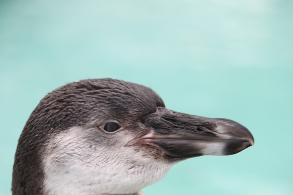 京都市動物園のフンボルト亜成鳥です。ほんわり白いほっぺがラブリーなお顔を、よーく見てみましょう。