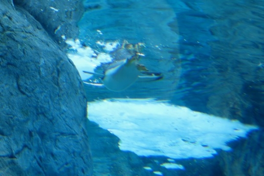 アドベンチャーワールド、海獣館2Fのイワトビ、円い窓にびったりくっついて外をのぞいていることがよくあり...