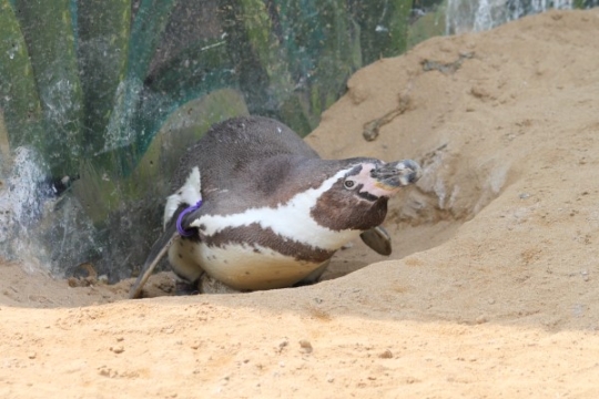 地面に掘った巣穴に収まるフンボルト。本場ではもっと深く掘るようですが、とりあえず今はこれで満足かな?...