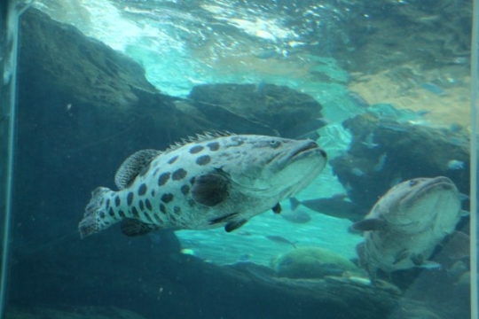 ペンギンのついでにカスリハタ、名古屋港水族館。いかついご面相にキュートな水玉模様のギャップが面白い、...
