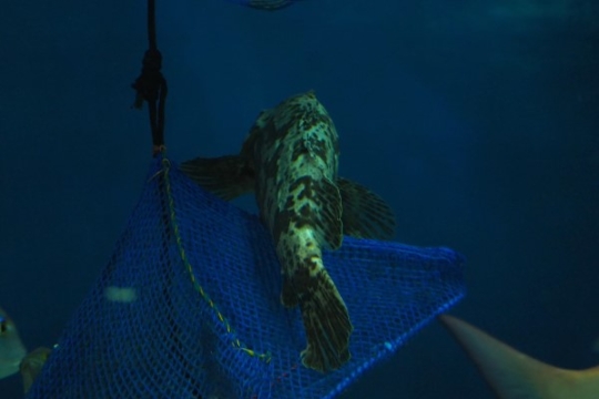 浅虫水族館の、漁具が並べて入れてある水槽です。こんなふうにお休み処として漁具を使っているサカナが何匹...