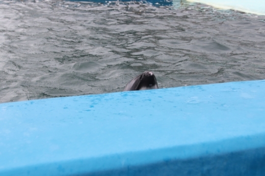越前松島水族館、ぺんぎんらんど隣のイルカ予備プールです。プールサイドに顔を出してくれたカマイルカ。見...