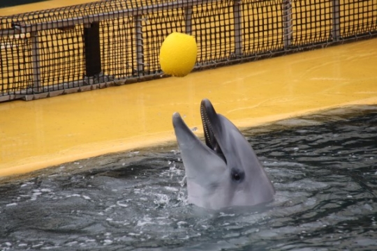 広いプールを1人で眺めていると、イルカがウキを投げ上げてはーーーーーーーーーーキャッチする技を披露し...