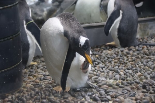 海遊館のアデリーが、目立つ場所で頭をカキカキ。この動作、踊っているように見えるので、私は『ペンギン音...