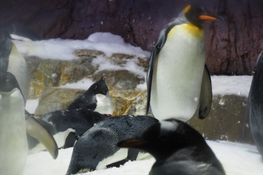 海遊館のアデリー、降りそそぐ氷のシャワーを浴びています。ーーーーーーーーーー「よお冷えまっせ~」 別...