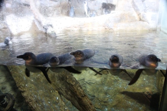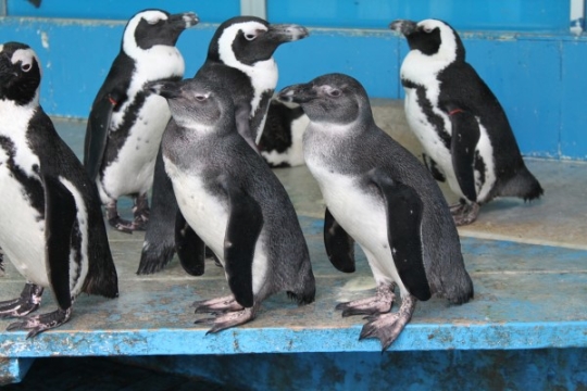 こちらはアドベンチャーワールドのケープたち。目立つところにいる3羽は亜成鳥です。オトナとは色柄が違い...