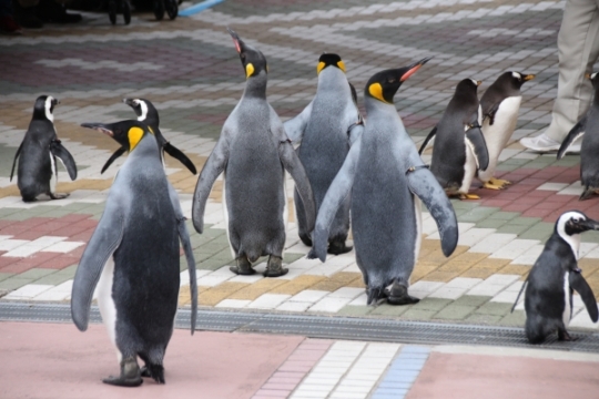 ペンギン様の御成~!前回のイベント会場へと、悠々と歩みを進めるキングと、ジェンツー、ケープ。会場まで...