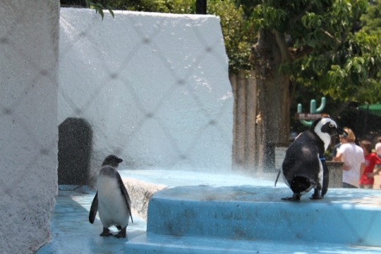 上野動物園の暑いケープペンギンには、シャワータイムがあります。勢いよく噴き出す水でホッと一息。ーーー...