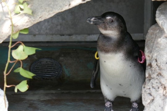 上野動物園のケープ若鳥、巣穴から外の様子をうかがっているみたいです。少し前の記事に出した『一見つり目...