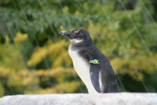 上野動物園のケープ若鳥、色づき始めた木々を背景に。