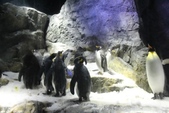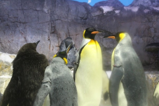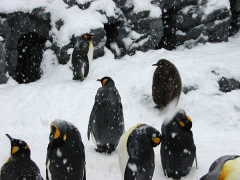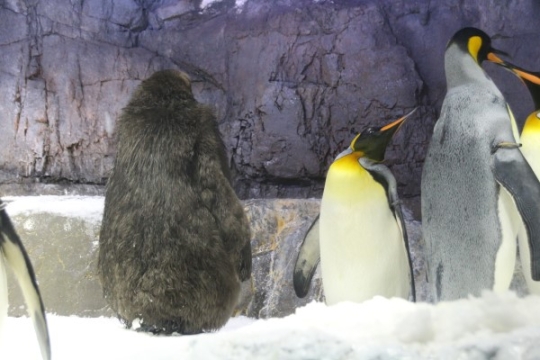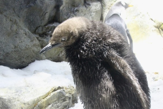 海遊館のキングヒナちゃん、ジェンツー陣営に遠征。ジェンツーの長い尾羽が気になります。ーーーーーーーー...