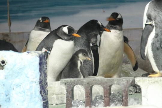こちら、名古屋港水族館のジェンツー親子。ほわほわのヒナ、大きくなって親のハラの下には入れなくなってま...