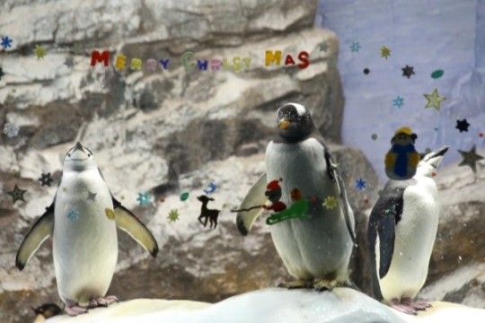 ペンギンたちからの「メリークリスマス」! ジェンツーとヒゲの御挨拶、ずっと前の名古屋港水族館でした。