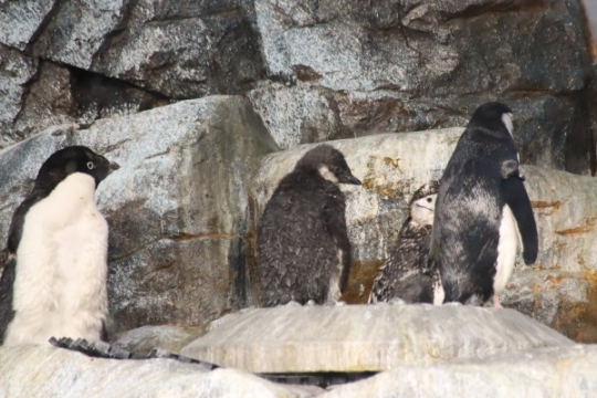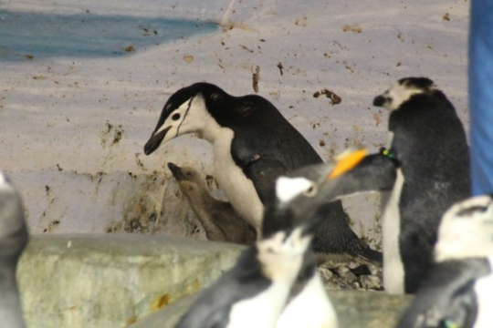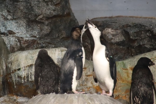 冬になると、名古屋港水族館ではペンギンの子育ての様子が見られます。こちらはヒゲペンギン。親のお腹の下...