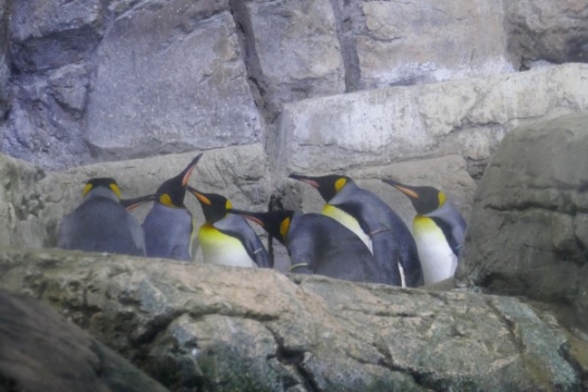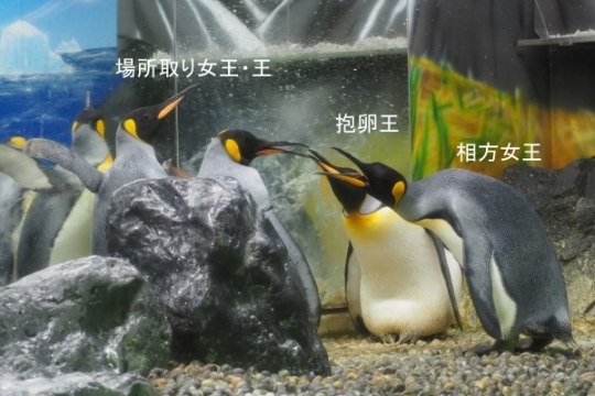 キングが集まって議論白熱!みたいに見える、八景島。じつは、安心できる物陰でタマゴを温めているのでした...