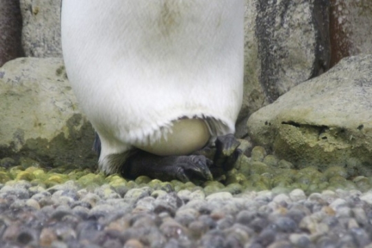 アドベンチャーワールドのヒゲペンギン、前回とは別のペア。温め中のタマゴを点検しています。相方はしっか...