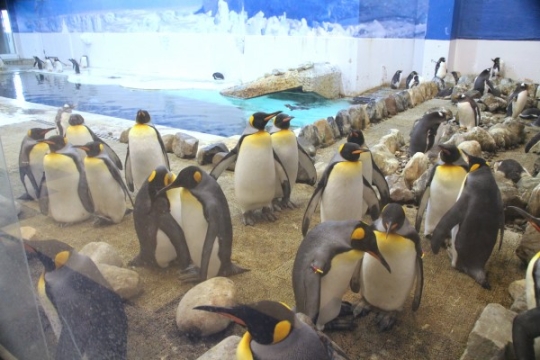 アドベンチャーワールドの海獣館。アデリーが巣についているとき、気長に見張っていると、ーーーーーーーー...