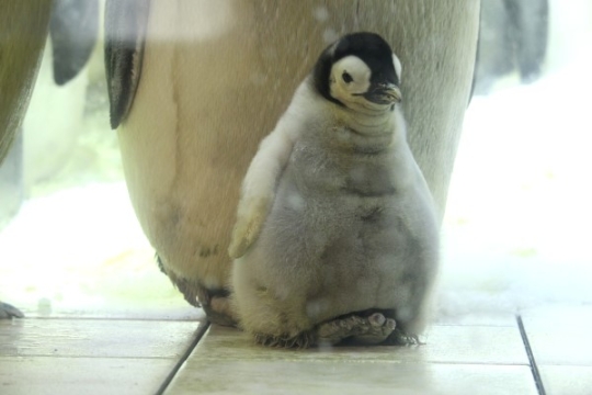 アドベンチャーワールドのエンペラーひな、10月に生まれて、3月にはこうなっていました。ヒナのほわほわ幼...
