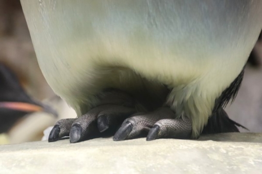 最大のペンギン、エンペラー。その足は、まるで恐竜の足のようです。そして、極寒の地に生きる種だけあって...