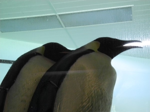 アドベンチャーワールドの別室で仲良く過ごすエンペラーを撮りたかったのですが、口から冷凍光線を放つペギ...