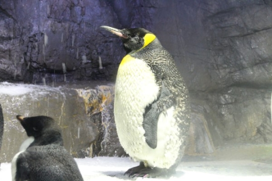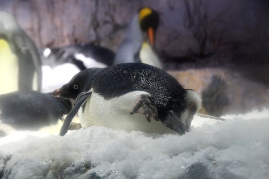 海遊館のアデリーが、目立つ場所で頭をカキカキ。この動作、踊っているように見えるので、私は『ペンギン音...