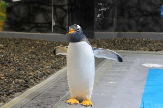 前回写真で可憐な黄色い足を見せていたジェンツー。じゃあ足の裏は? モデルは名古屋港水族館のジェンツー...