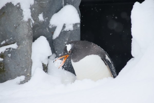 旭山動物園の納涼ペンギン写真、本日は雪で遊ぶジェンツーでございます。撮影当日の気温は正午過ぎでマイナ...